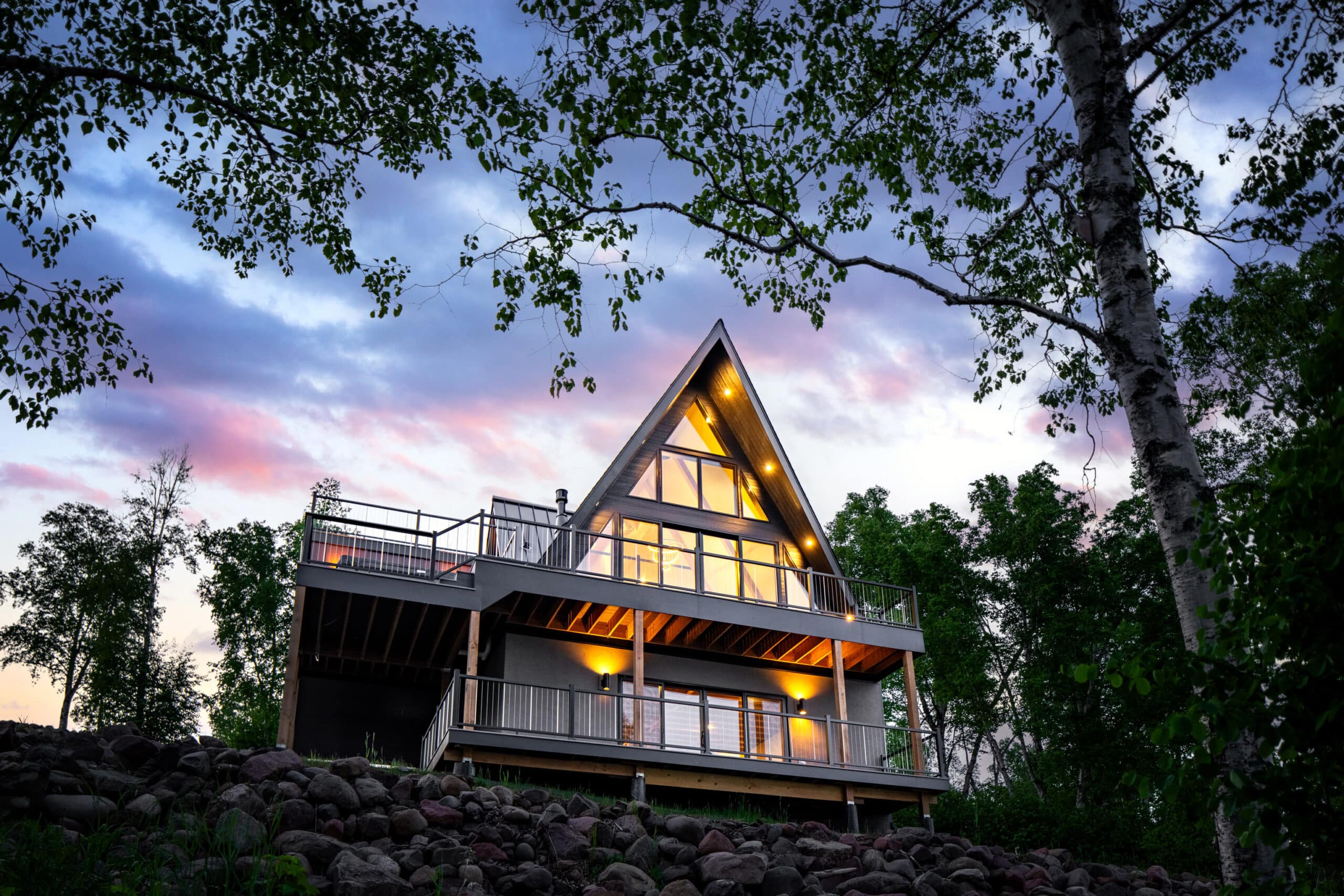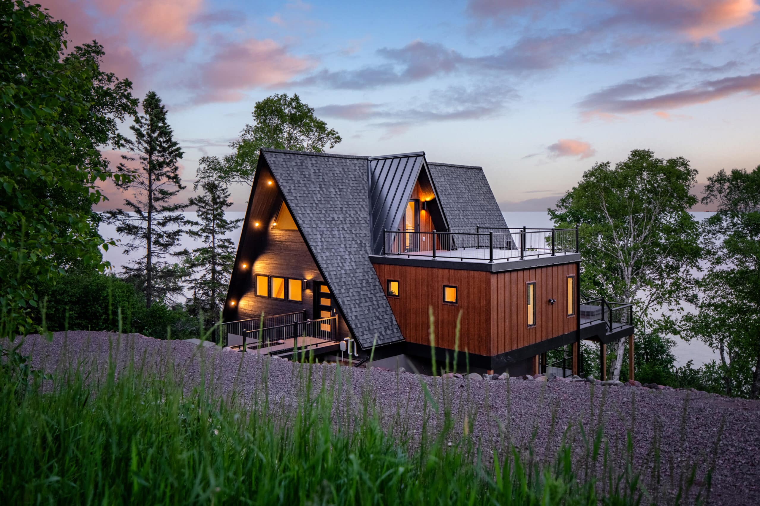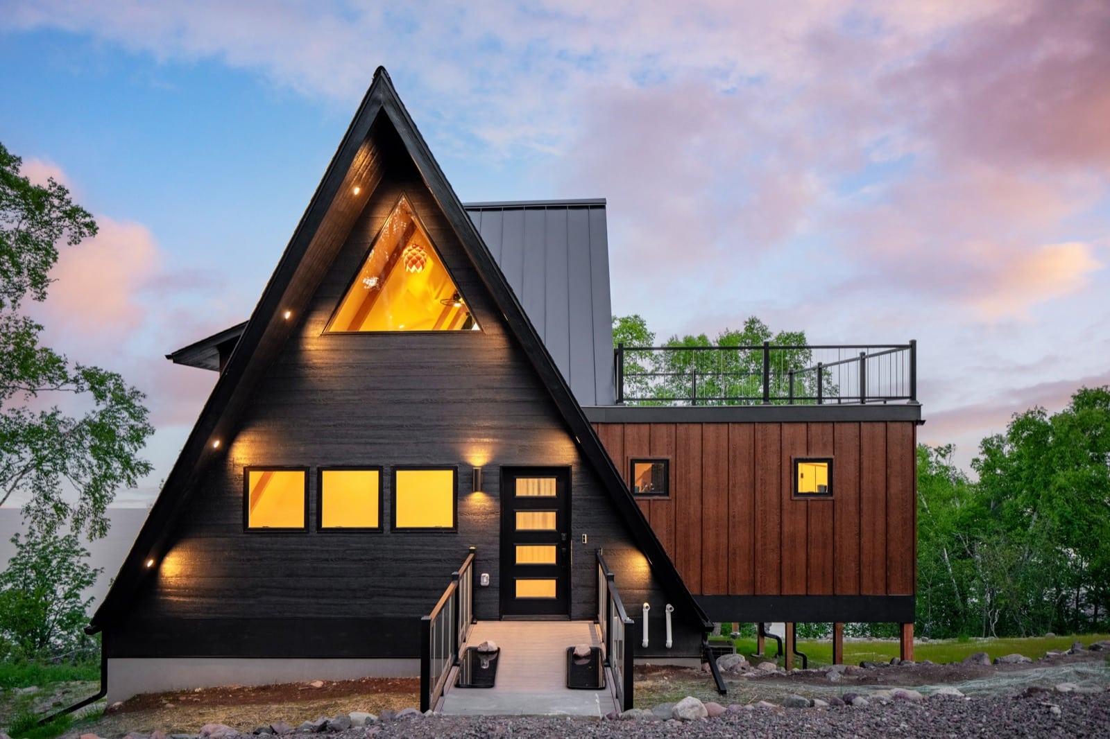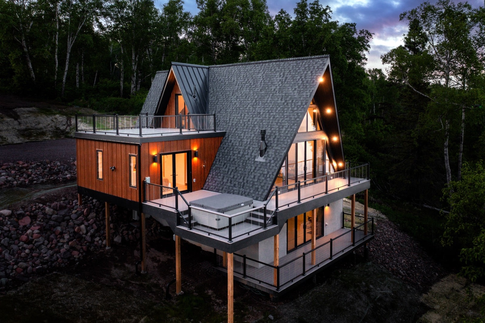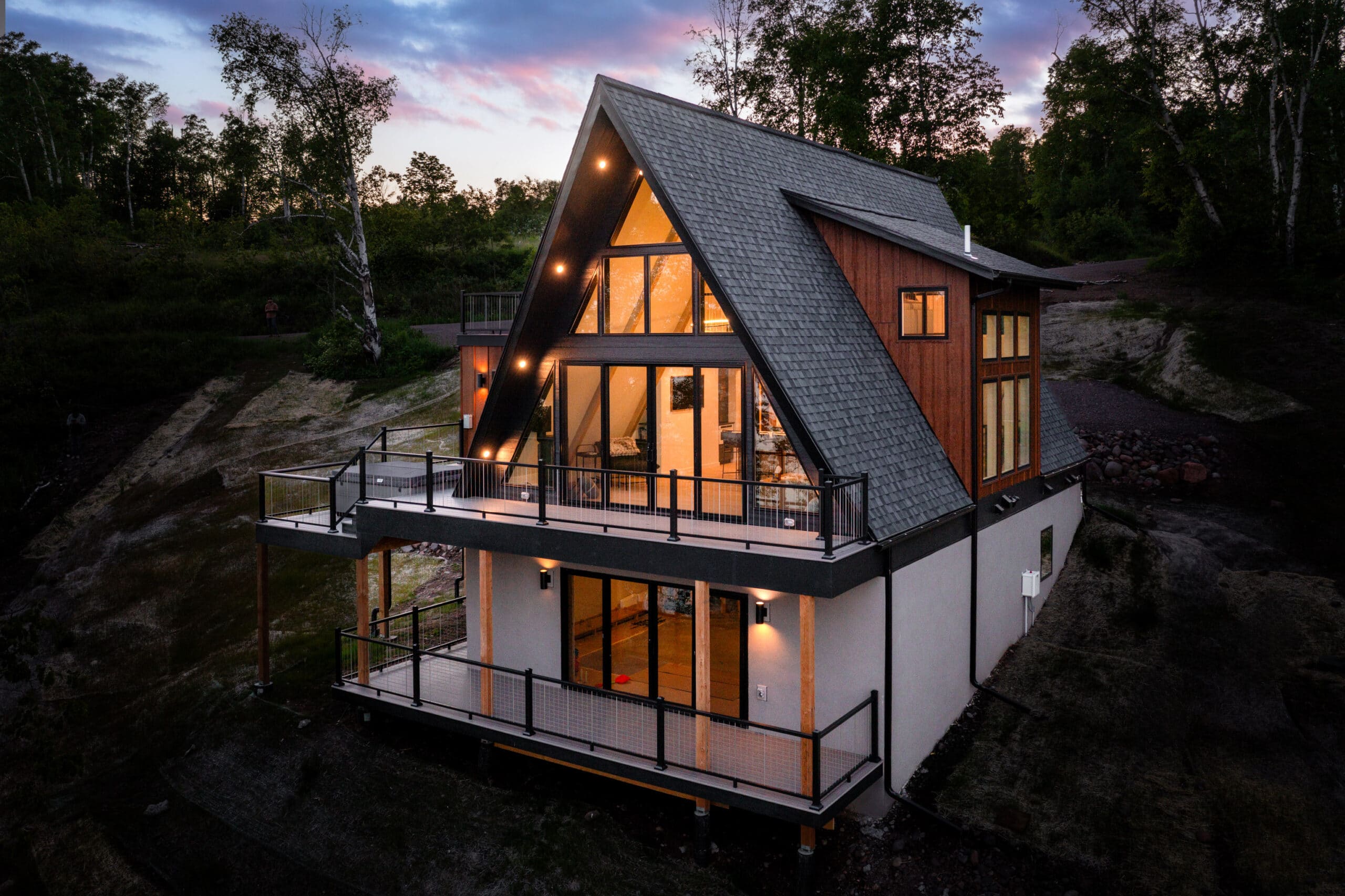 This striking A-Frame home overlooking Lake Superior captures the essence of modern cabin living. Designed with clean lines, natural materials, and gable glass wall, it frames the lake views as the centerpiece of every room. Blending the charm of a classic A-Frame with today’s luxury finishes, the River Birch Retreat offers both sophistication and comfort in a one-of-a-kind setting.