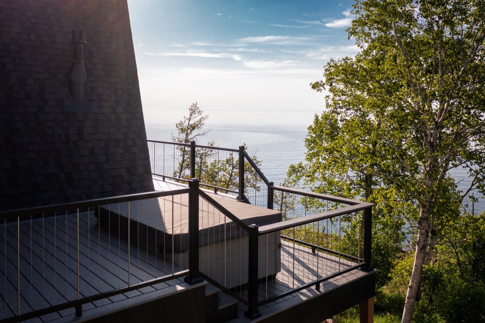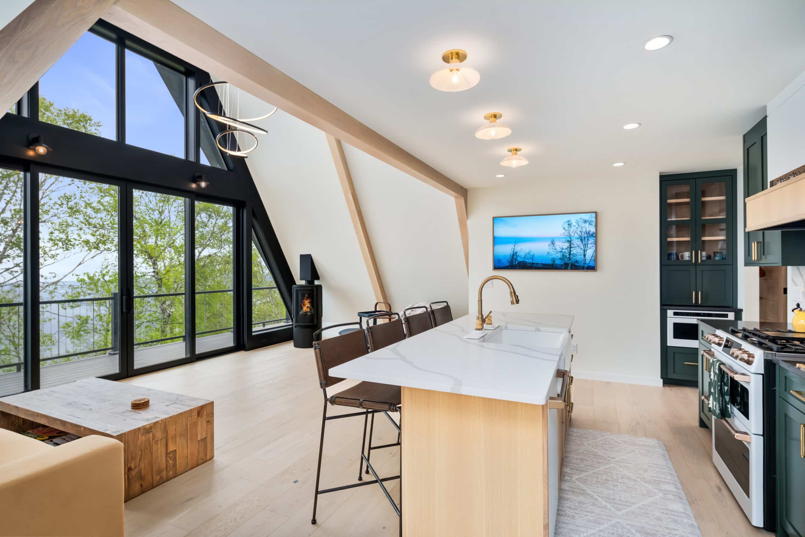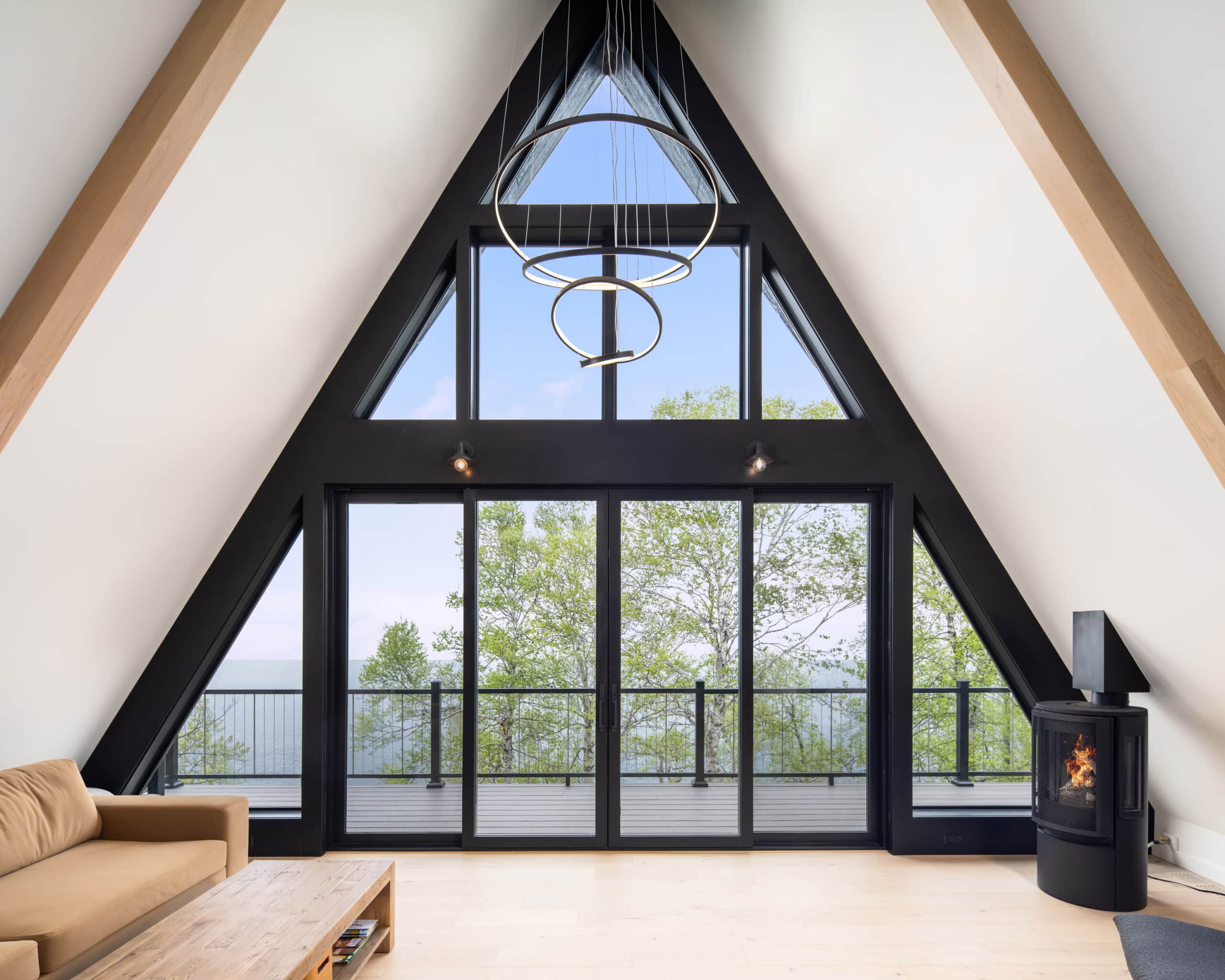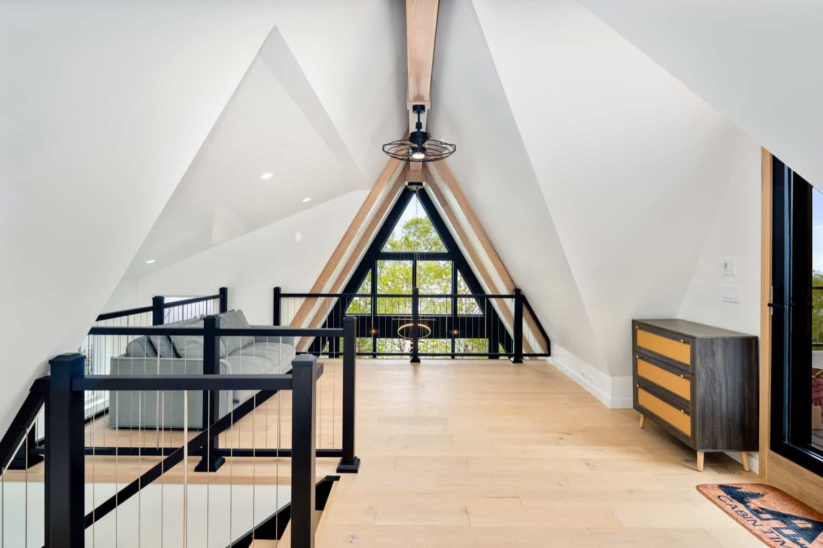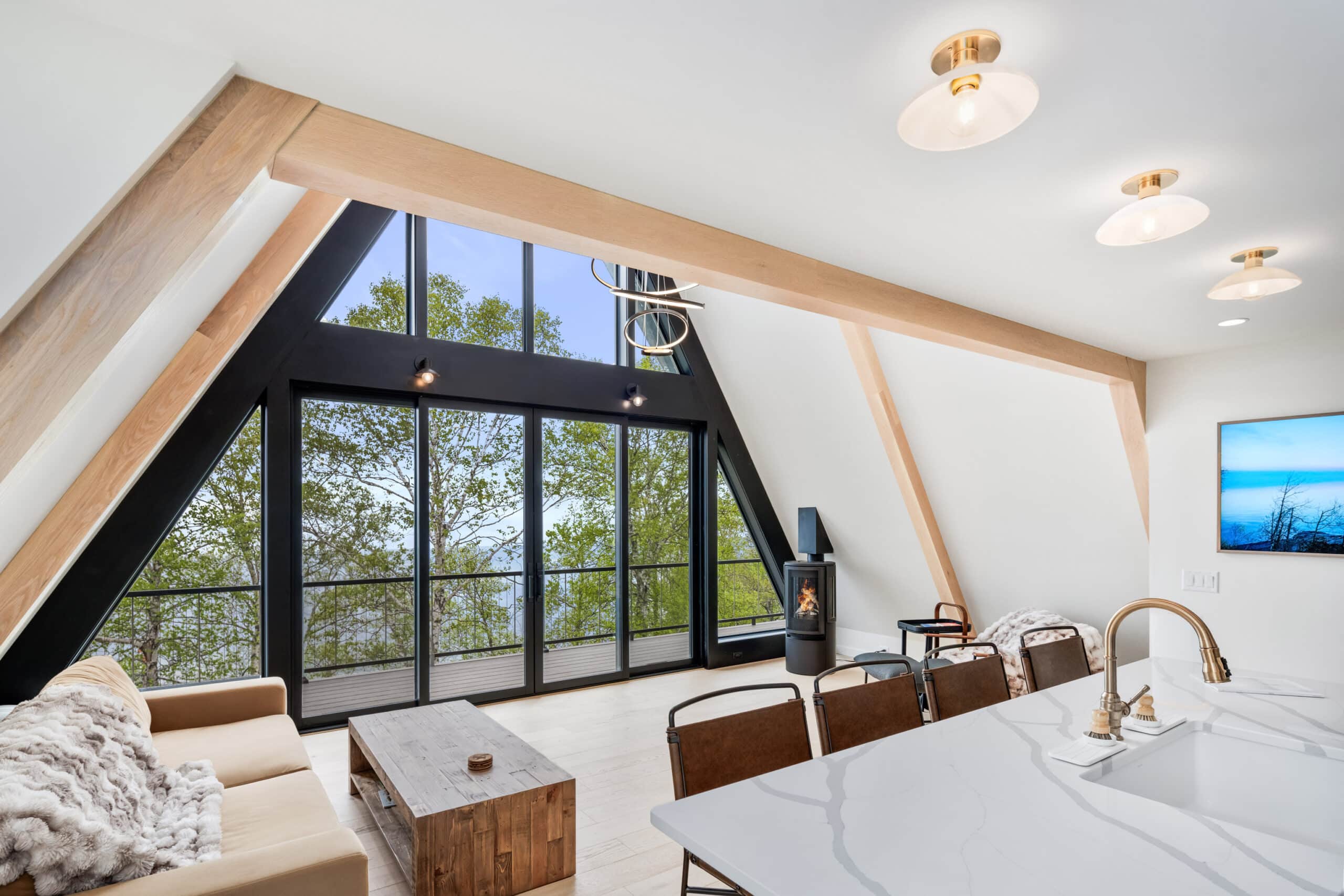 This striking A-Frame home overlooking Lake Superior captures the essence of modern cabin living. Designed with clean lines, natural materials, and gable glass wall, it frames the lake views as the centerpiece of every room. Blending the charm of a classic A-Frame with today’s luxury finishes, the River Birch Retreat offers both sophistication and comfort in a one-of-a-kind setting.